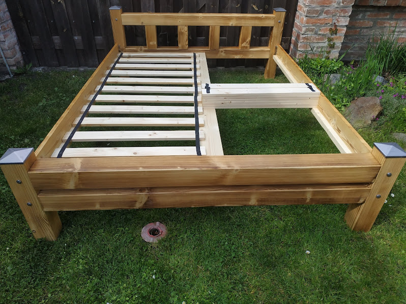 iHNED, nová trámová postel s roštem 180 x 200 - [10.11. 2025]NOVÁ, masivní postel v rozměru 180 x 200 s roštem v černém oleji. Konstrukční materiál postele je 4 cm !!!!! a nohy jsou z trámů 10 x 10 !!!!! Čelo vysoké 80 cm a výška sedu 33 cm.