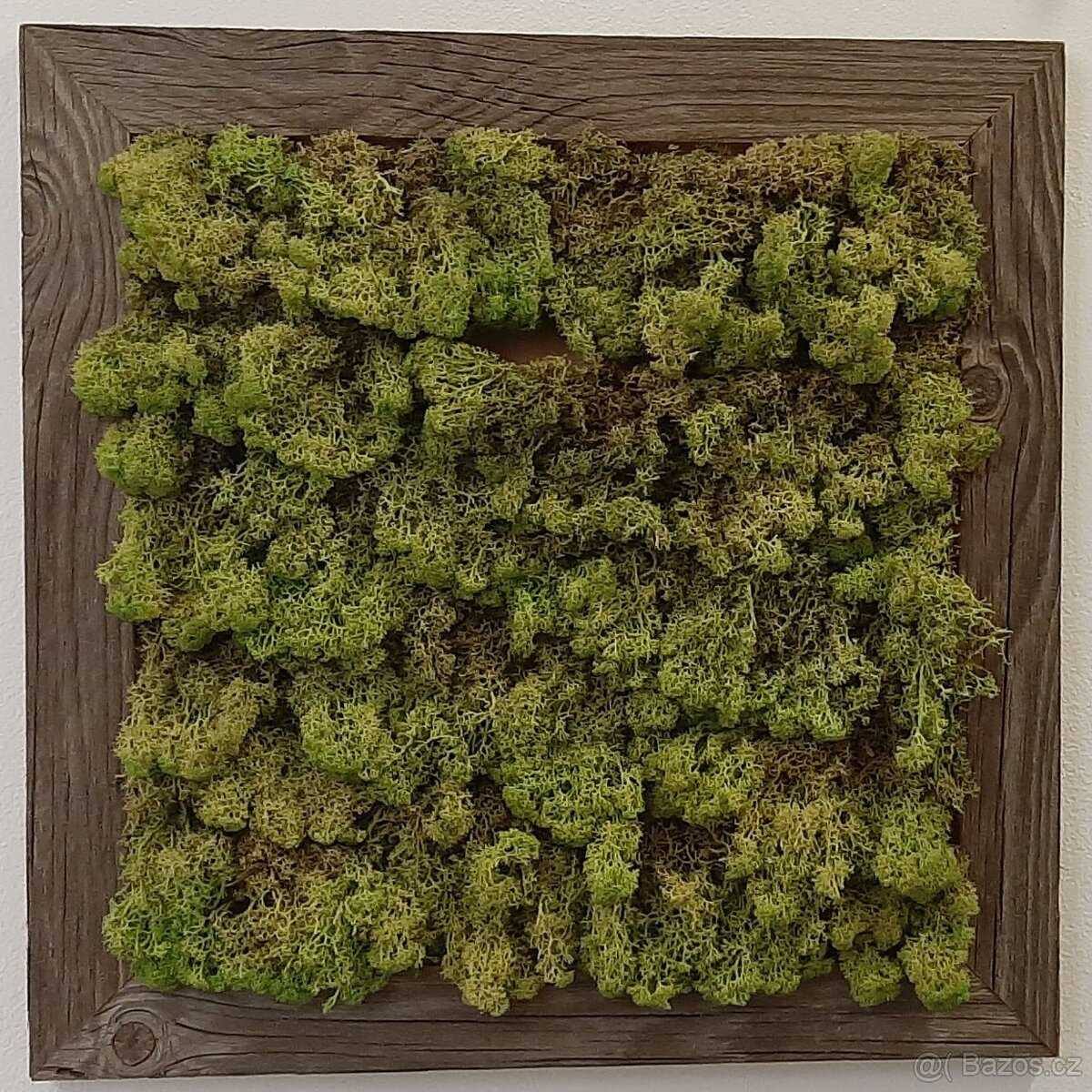 Dekorativní obraz z věčně zeleného mechu, dřevěný rám. Rozměr 50 x 50 cm.