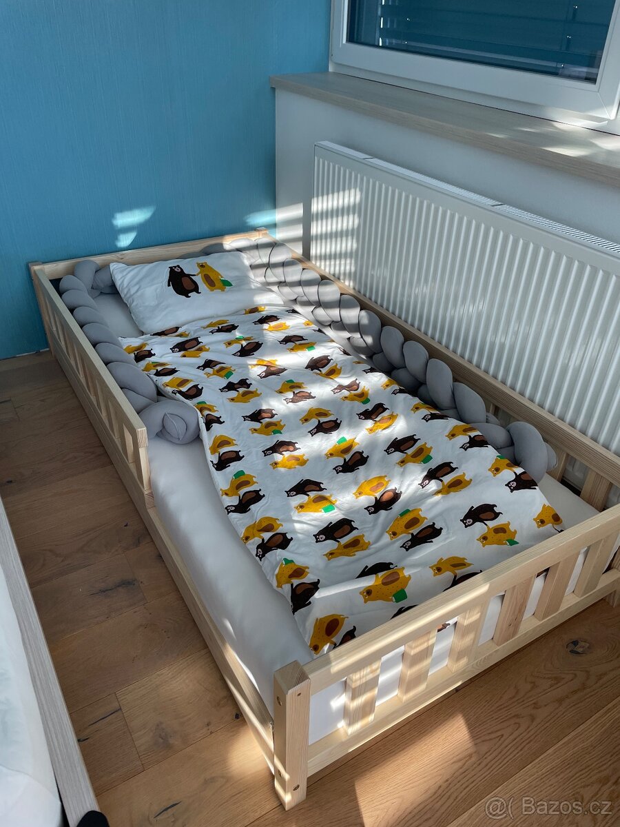 Prodám nízkou dětskou postel s bočnicí i s matraci. Ještě v záruce 3/25