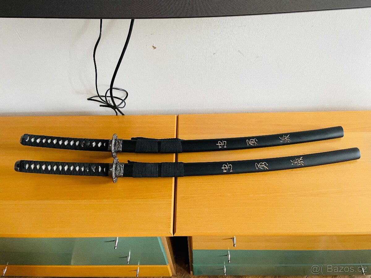 Samurajsky meč dekorace maketa 2kusy se stojanem