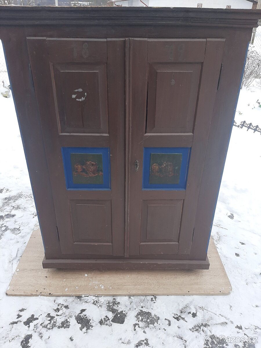 Selská Malovaná šatní skříň z roku 1879,je zachovalá