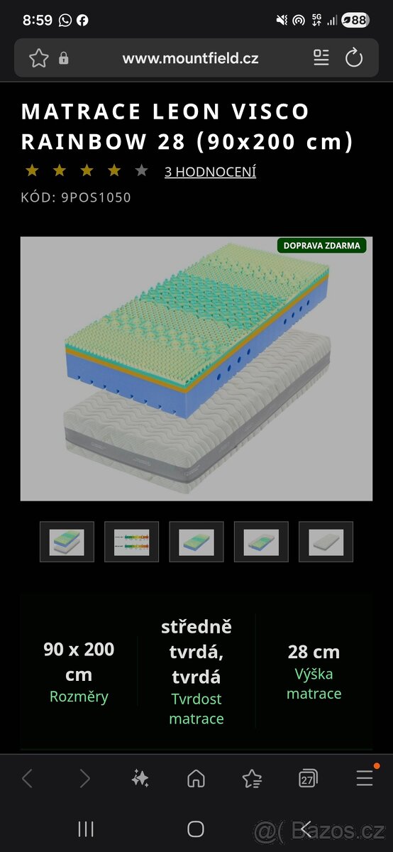 2 ks Matrace Leon Visco Rainbow 28 (90x200 cm)
