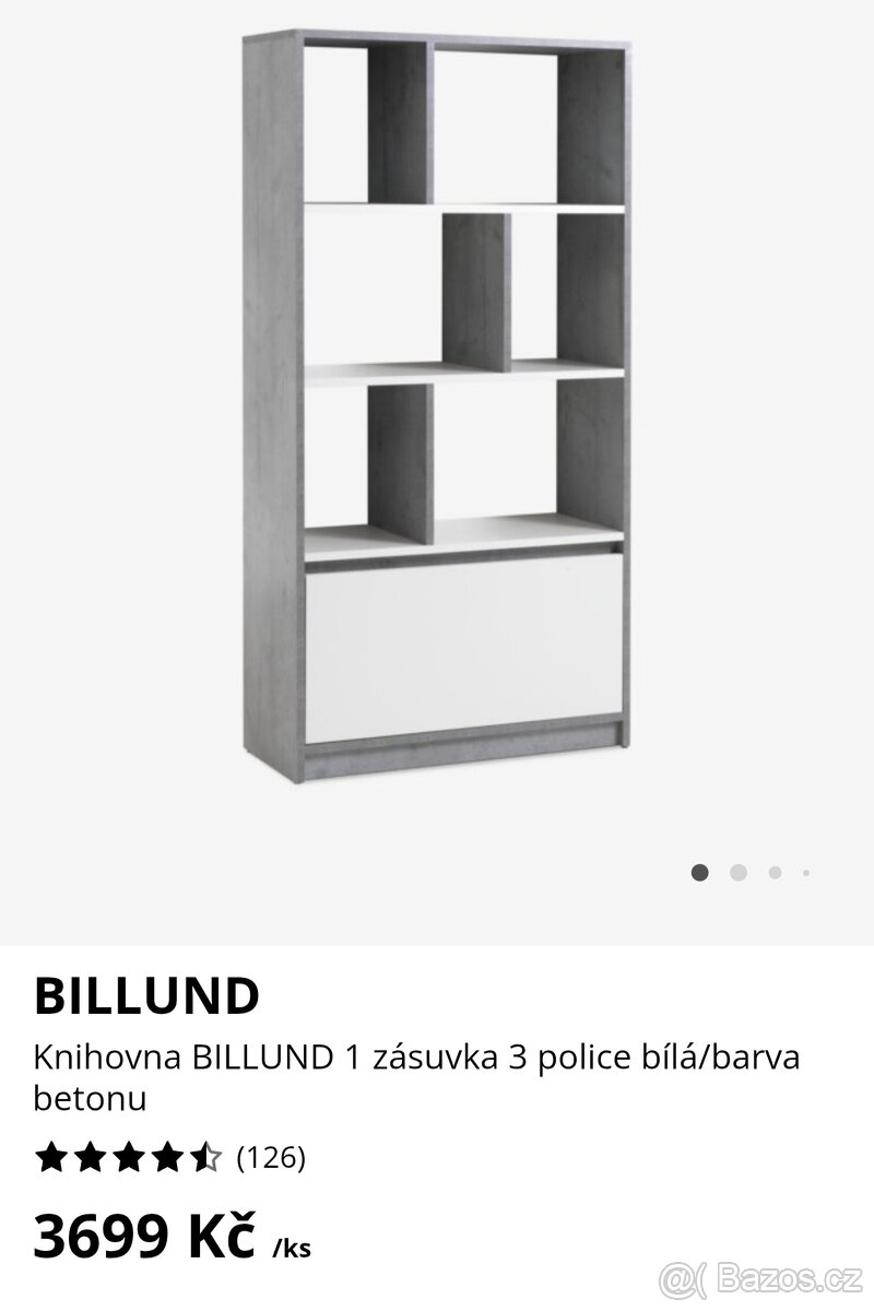 Pěkná policová skříňka se šuplíkem, vhodná do studentského pokoje s dekorem betonu. Pár měsíců stará, bez jakéhokoliv poškození. Je z Jysku (viz foto)