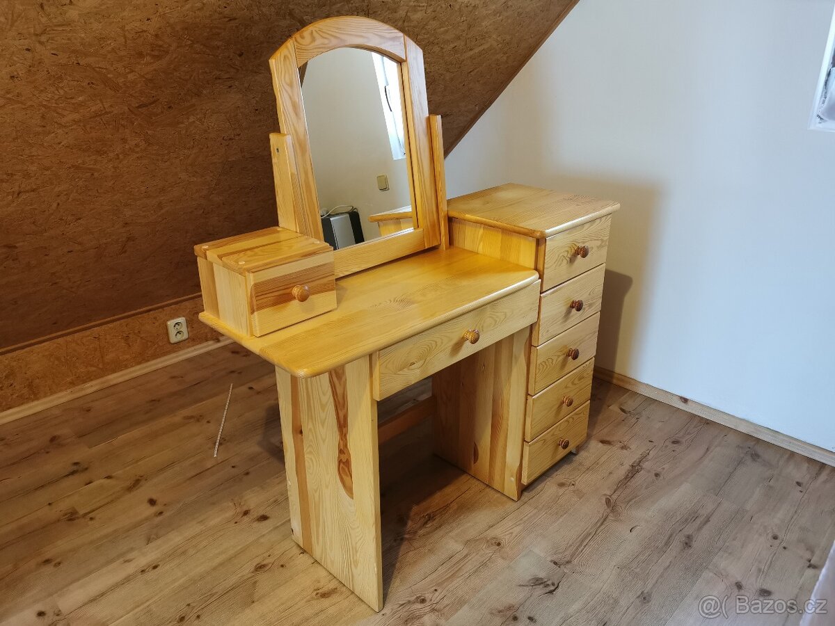 Prodám toaletní stolek se zrcadlem. Stolek je v dobrém stavu. Není to dřevotříska, ale dřevo. Zrcadlo lze naklápět nahoru a dolů dle potřeby.