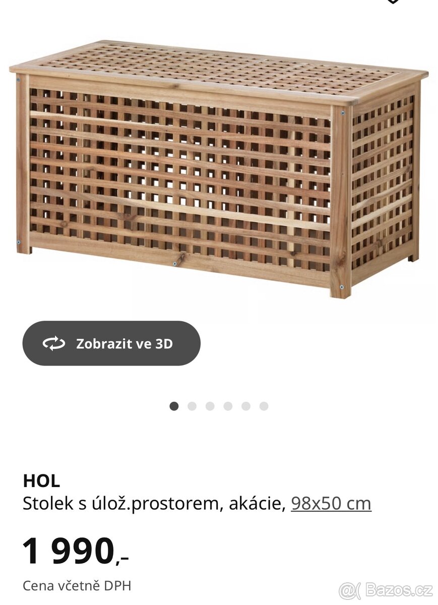 Prodám úložný dřevěný stolek, rozměr 98 x 50 cm, využitelný na skladování sezonního oblečení, lůžkovin apod. Cena 990,- Kč. K odběru Praha 19. V případě zájmu volejte 720 190 655. Děkuji