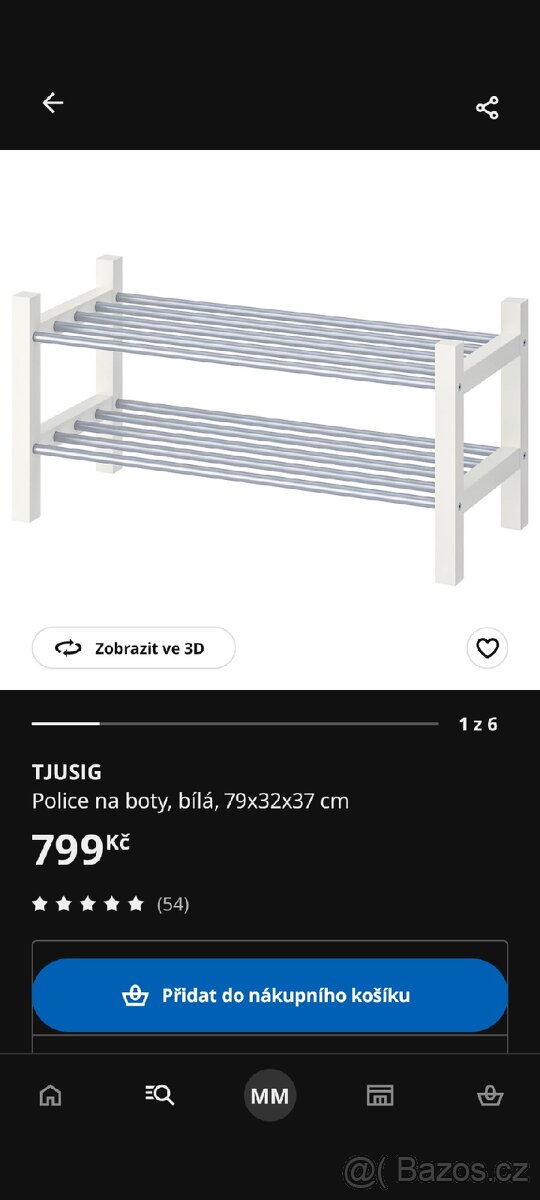 Botník IKEA TJUSIG, bílý. Rozměry 79x32x37. Prikladne drobné oděrky viz foto. Je rozložený, pouze osobní předání Kladno Kročehlavy. Jsme ochotní to odvézt v okolí Kladna cca 15 km.