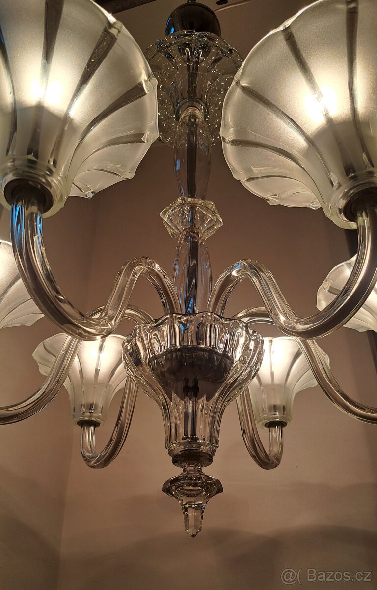 Art deco, starožitný celoskleněný lustr