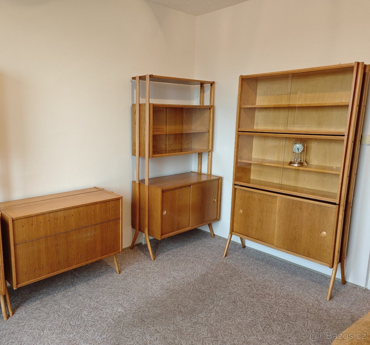 Retro nábytek – kompletní sestava vyrobený v 60 letech. v tzv. Bruselském stylu.