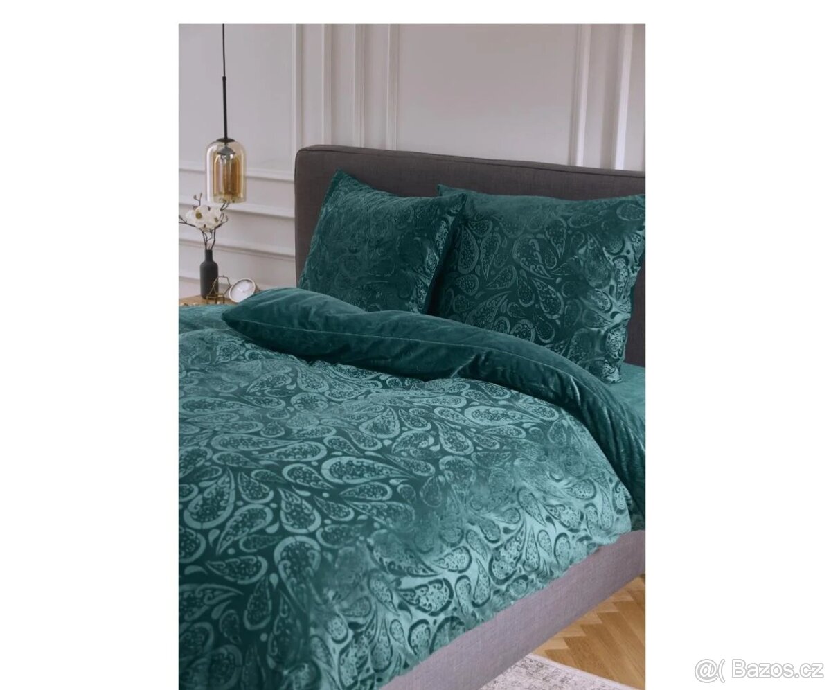 Nádherná sada plyšového tyrkysového ložního povlečení, 140 x 200 cm, 70 x 90 cm, + napínací prostěradlo ve stejné barvě a materiálu