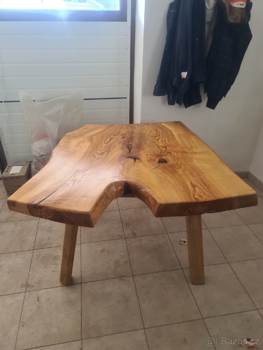 Prodám masívní stůl z našeho jasanu o výšce 78 cm a rozměrech desky cca 97 x 110 cm.. Deska je vysoká cca 8 cm.