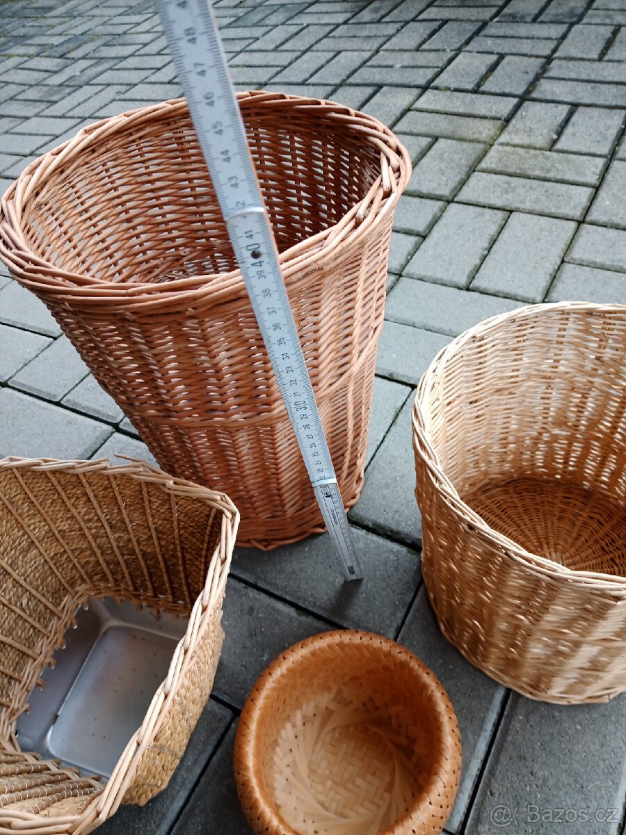 Pletené proutěné koše jako obal na květináče 4 různé typy . Nejvyšší je 40cm , průměr 25 cm. Cena za všechny.