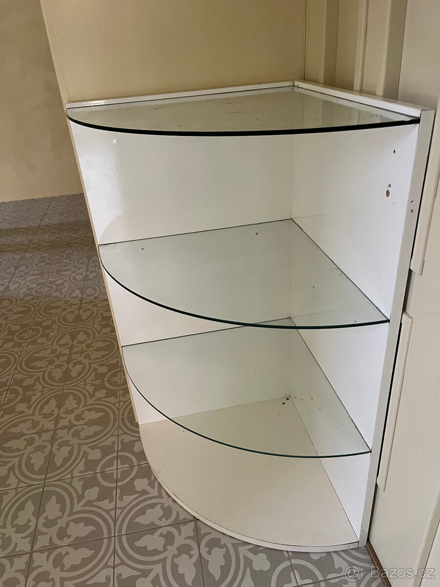 Prodám rohovou skříňku na dekorace, nebo do koupelny o rozměrech šířka 50 x hloubka 50 x výška 93cm. Skříňka je z bílého lamina se třemi skleněnými policemi. Původní cena 3000 Kč