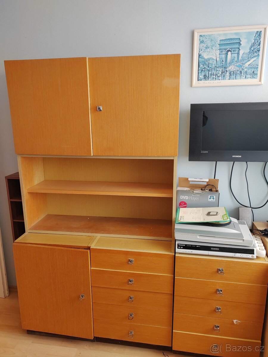 Jedná se zřejmě o Universál. Samostatné skříňky, šuplíky a dvě velké skříně s nástavci.