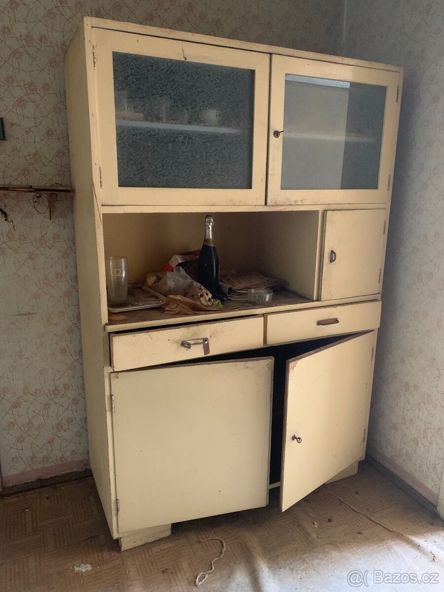 Prodám starý kredenc. Výška 180 cm, šířka 120 cm, hloubka 50 cm.
