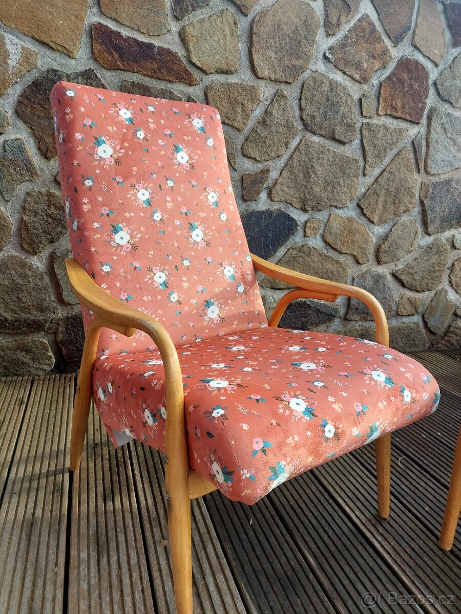 Nabízím velmi pohodlná křesla po kompletní renovaci,počalouněné příjemným sametem, dřevo ošetřené do odstínu sv. Dub, cena uvedena za pár