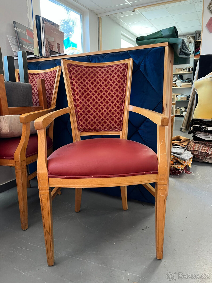 V případě zájmu můžeme nabídnout nové čalounění ( cca 1900,-/ kus) i renovaci dřeva.