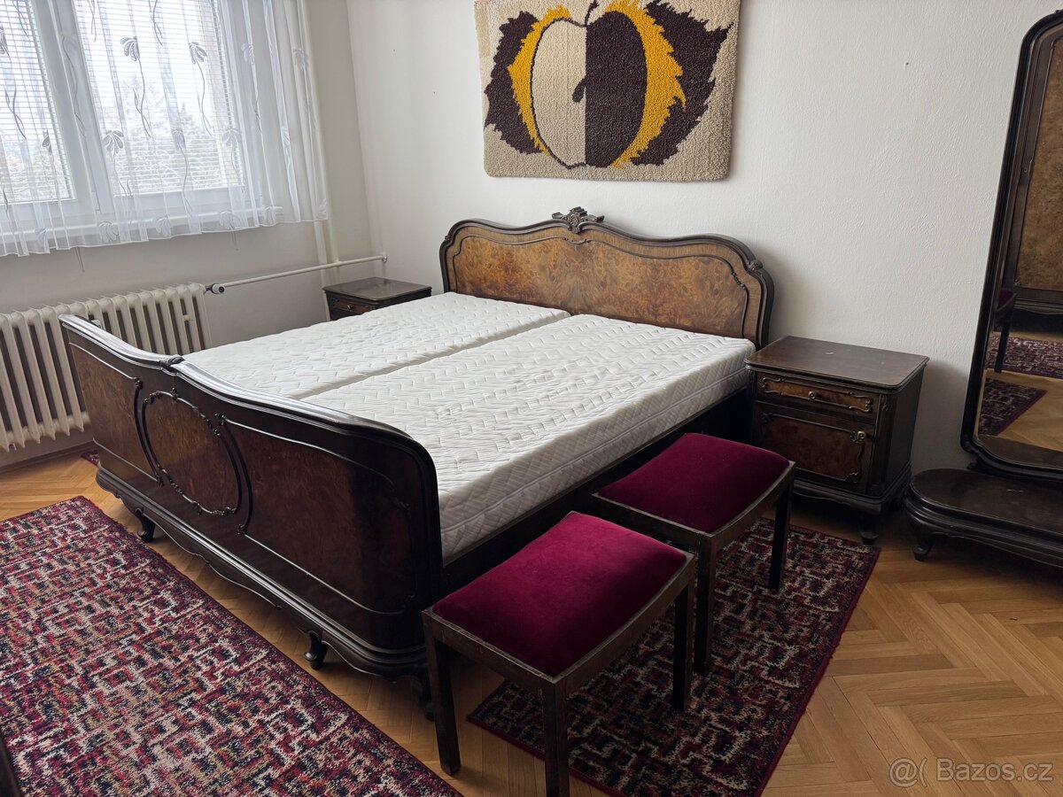Prodám kompletní ložnicový nábytek z meziválečného období (cca 1930–1940) ve sjednoceném stylu. Velmi slušný a zachovalý stav. Zánovní matrace na míru