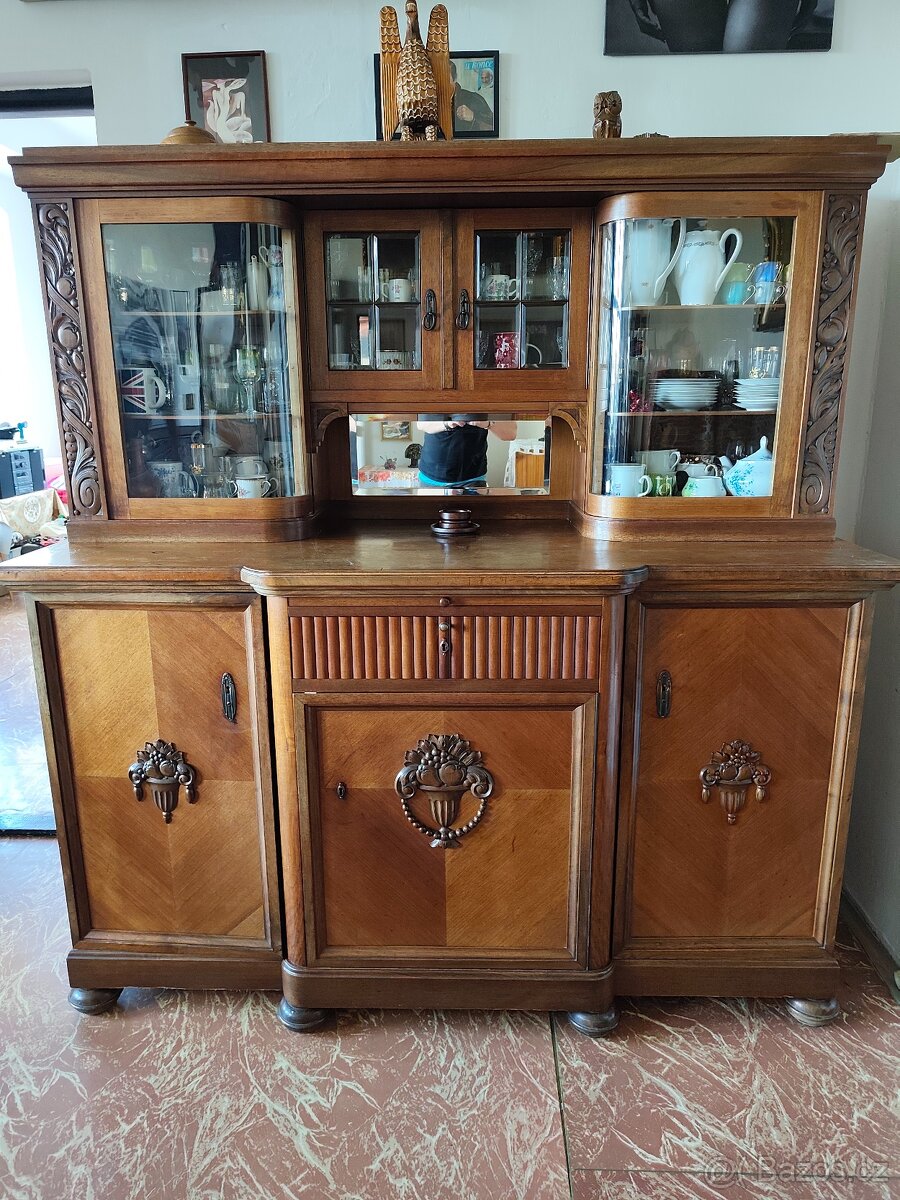 Prodám starožitný příborník zdobený z období první republiky. Na svá léta je ve velmi pěkném neponičenem stavu. Příborník má dokonce zachovalé klíče i funkční zámky. Budoucímu majitely nechám za 29000,-