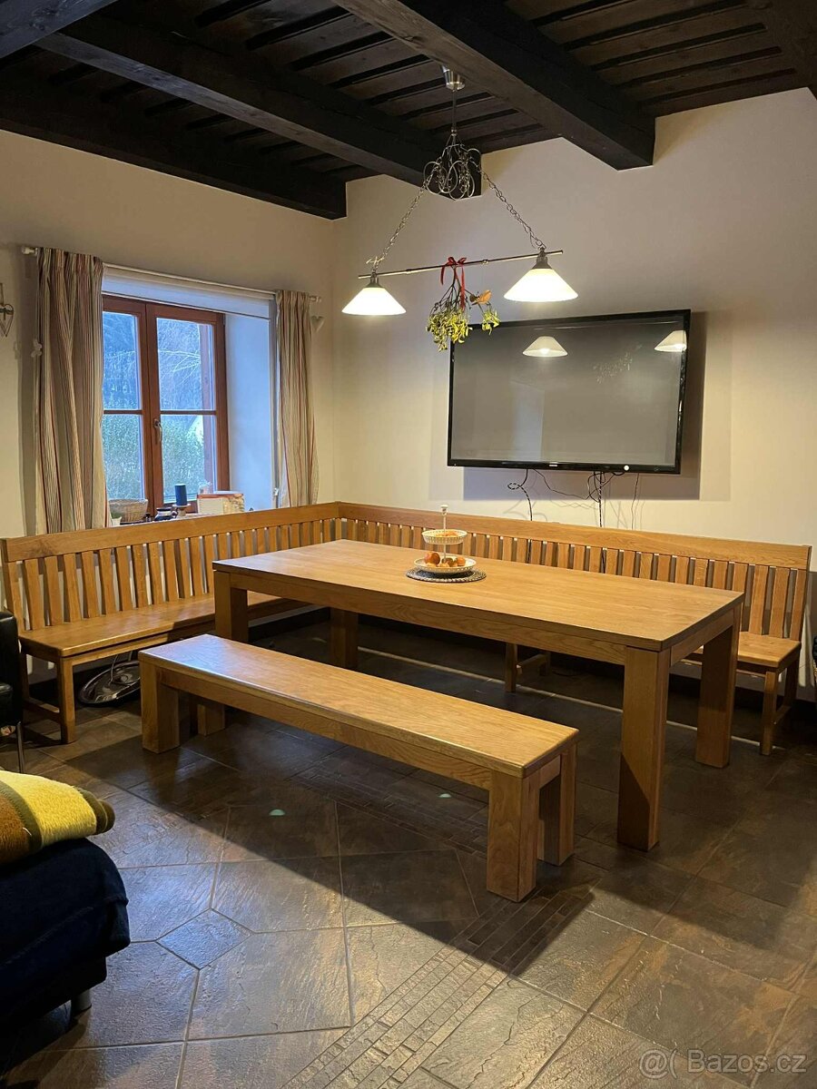 Velký dubový stůl a lavice