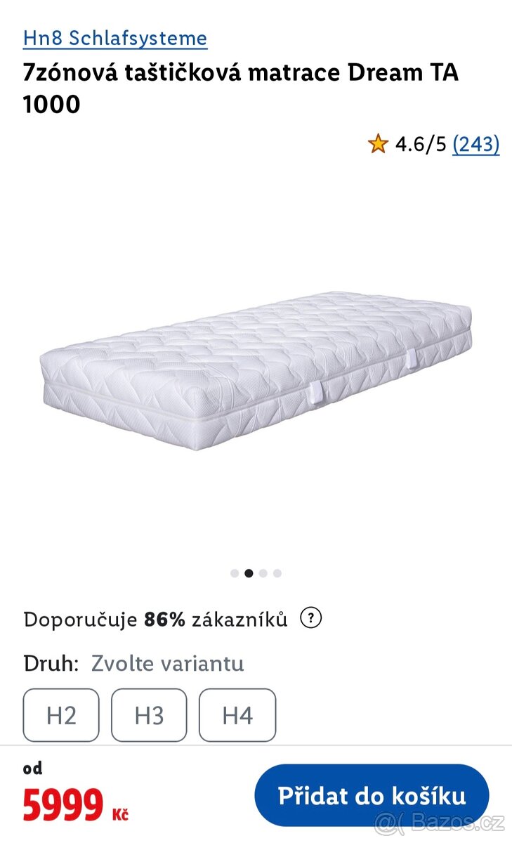 Prodám nové 7 zónové taštičkové matrace 90x200 cm 2 kusy tuhost H2 a H4 Výška matrace 22 cm snímatelný prací potah PC 6000 nyní 4500 za kus možnost dovozu do 20km za příplatek