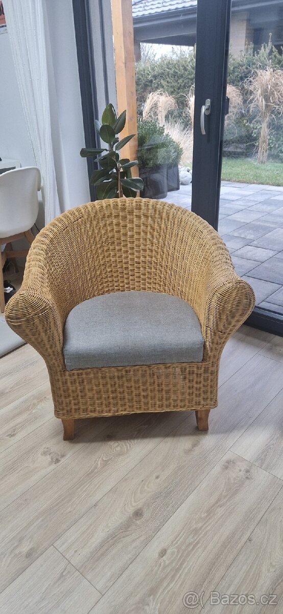 Kreslo je v dibrem stavu az na par vylomenych proutku