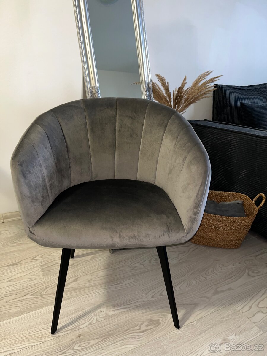 Krásná sametová šedá židle, sedělo se na ní dohromady 10x, celou dobu spíš sloužila jen na odkládání oblečení, takže je jako nová.