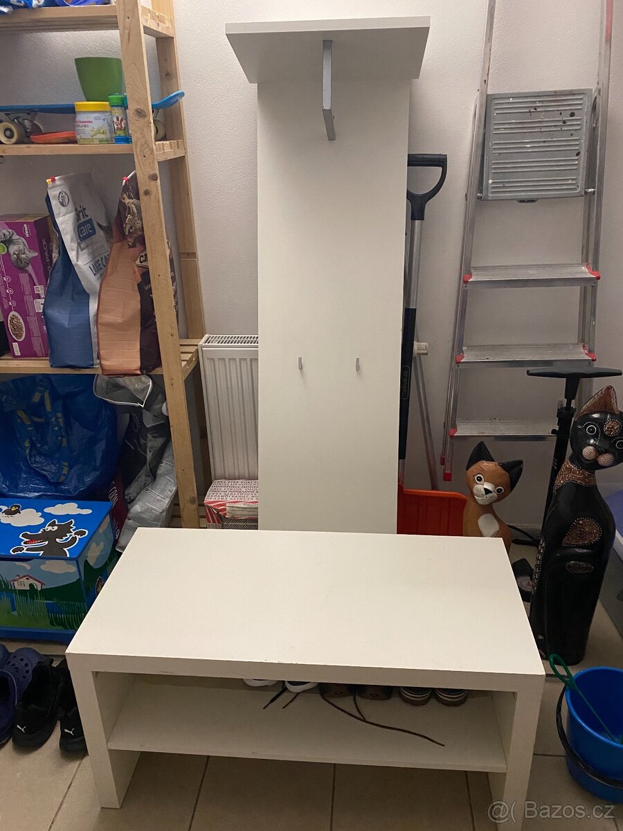 Prodám zachovalou předsinovou soupravu bílé barvy. Má drobné opotřebení na hranách lavice. Lze snadno opravit.