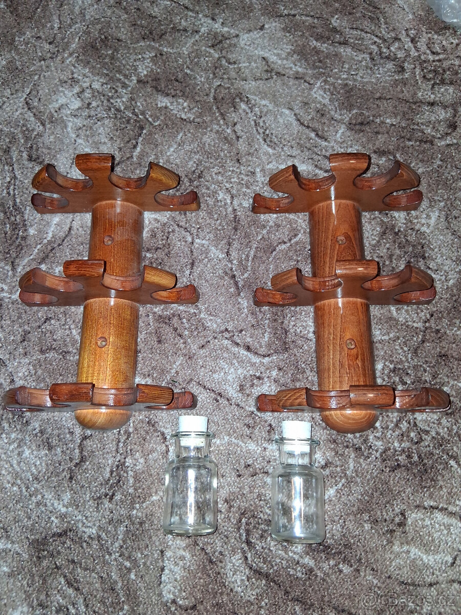 Prodám dvě poličky na kořenky a 12ks skleněných kořenek. Poličky jsou v perfektním stavu, jsou na běžný rozměr kořenek, které lze zakoupit např. "Koření od Antonína". Cena za vše.