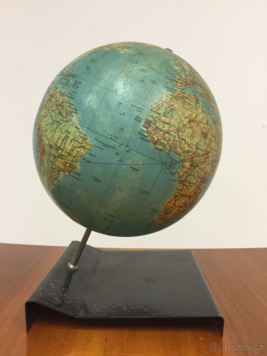 K prodeji originální československý školní globus vydaný státním podnikem Kartografie Praha ve spolupráci s Kartografickým nakladatelstvím.