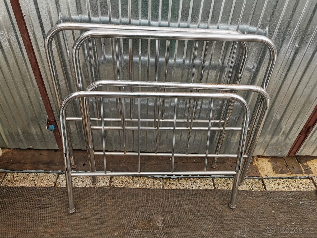 Prodám stará retro čela k chromované posteli, jen to co je na fotkách, cena 1 pár(jedno velké a jedno malé) 300,- kč, za vše cena 500,- možnost osobního předání i v Roudnici n.Lab