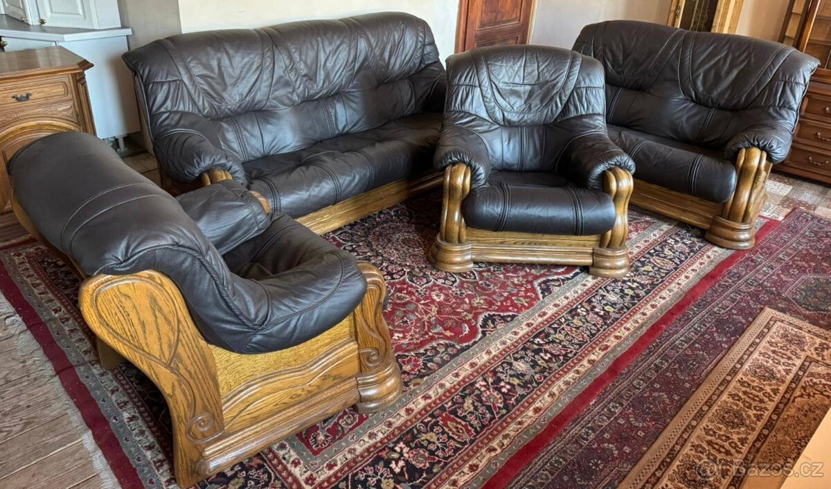 589 Rustikální kožená sedací souprava sedačka 3+1+1 masiv - [27.1. 2026]