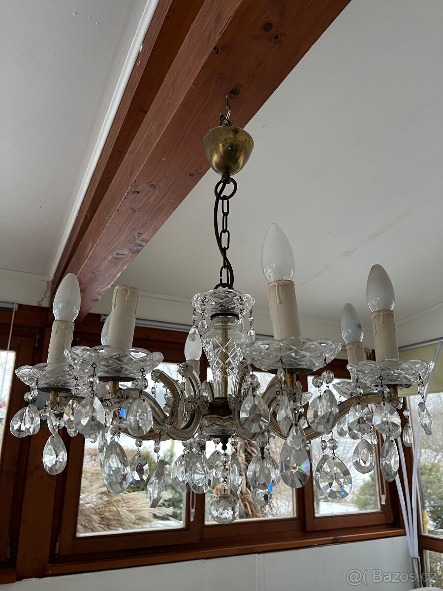 Křišťálový lustr - [6.2. 2026]Prodám křišťálový pětiramenný lustr, výška i šířka cca 45cm, délka od stropu 80cm.