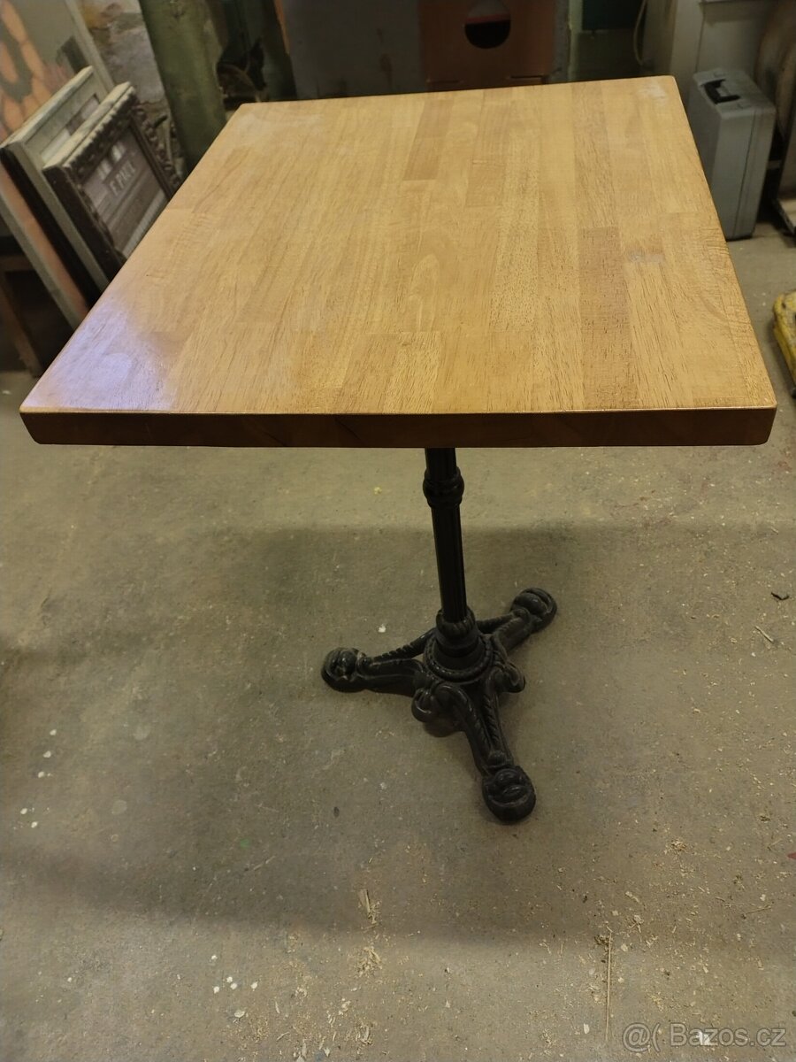 Prodám kavárenský stolek s deskou z tvrdého dřeva a nohou z litiny.