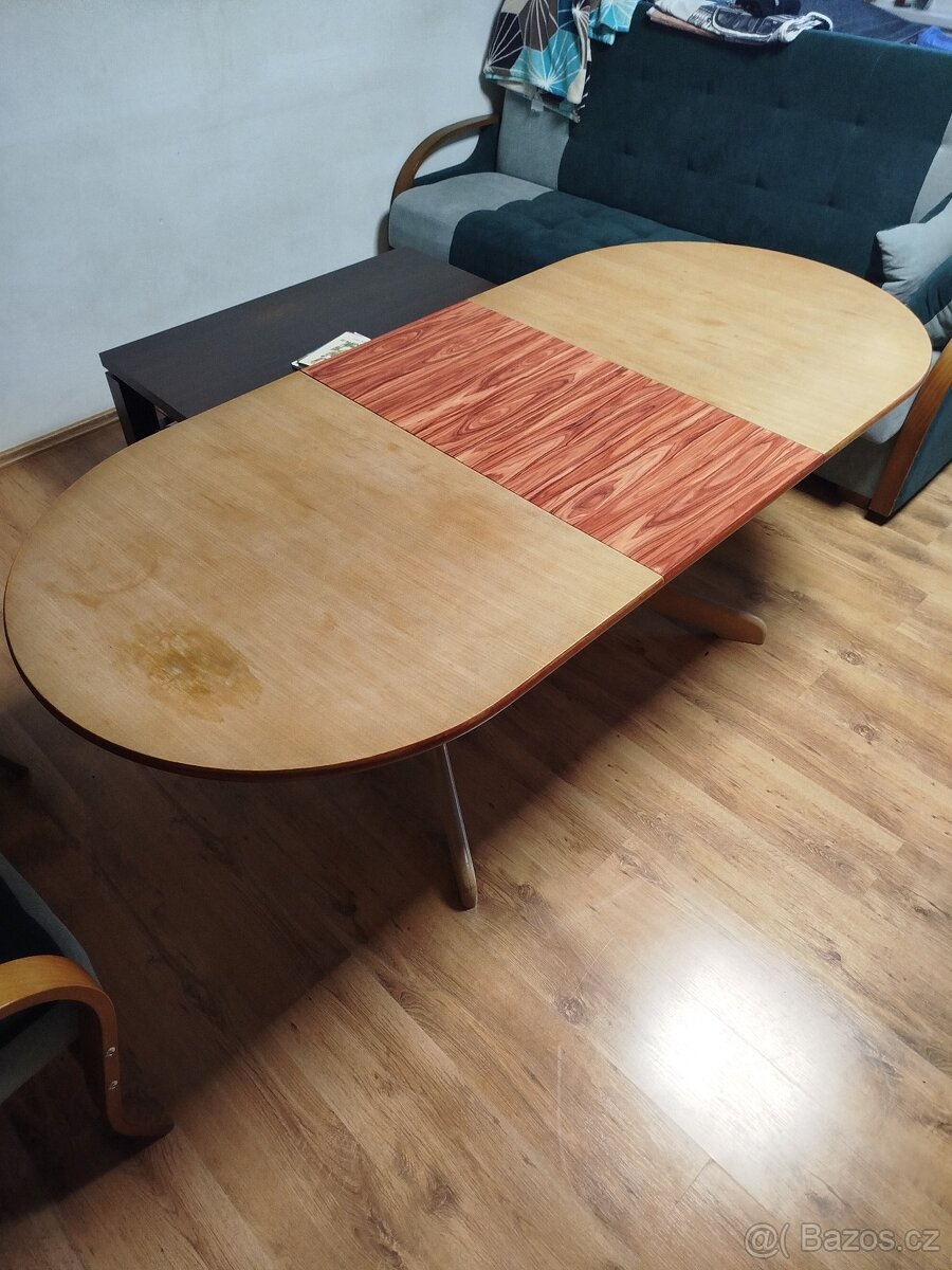 Prodám rozkládací stůl, rozměry 152cm x 90cm, rozložený 200cm x 90cm. Vše funkční, na středové části nalepená tapeta, dá se odstranit. Mohu zdarma dovést Svitavy - Moravská Třebová a okolí.
