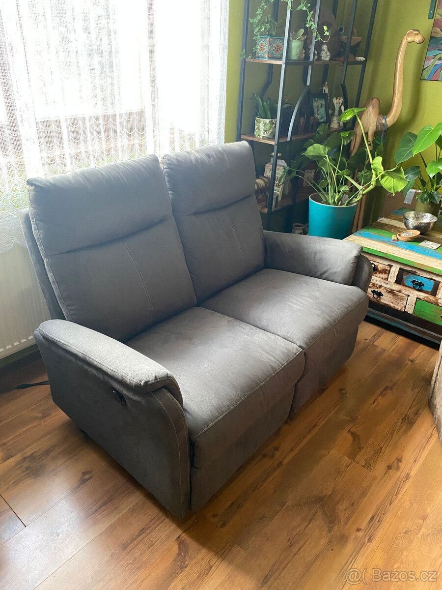 2místná pohovka s potahem. Sedadlo a opěradlo s pěnovou výplní. S elektricky ovládaným mechanismem pro plynulé naklápění a vestavěnou opěrkou na nohy. Š138xV103xH90-154 cm