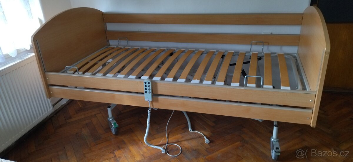 Elektrická polohovací postel + hrazda + matrace + potah - [9.2. 2026]Zdravotnické (rehabilitační) polohovatelné elektrické lůžko, čtyřfunkční