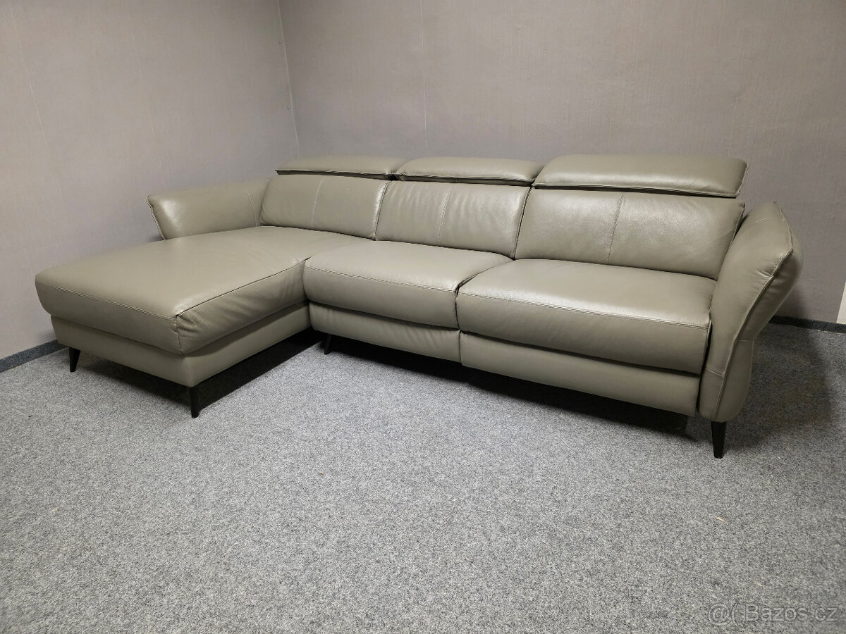 Nová rohová kožená relax sedačka HEDY šedohnědá