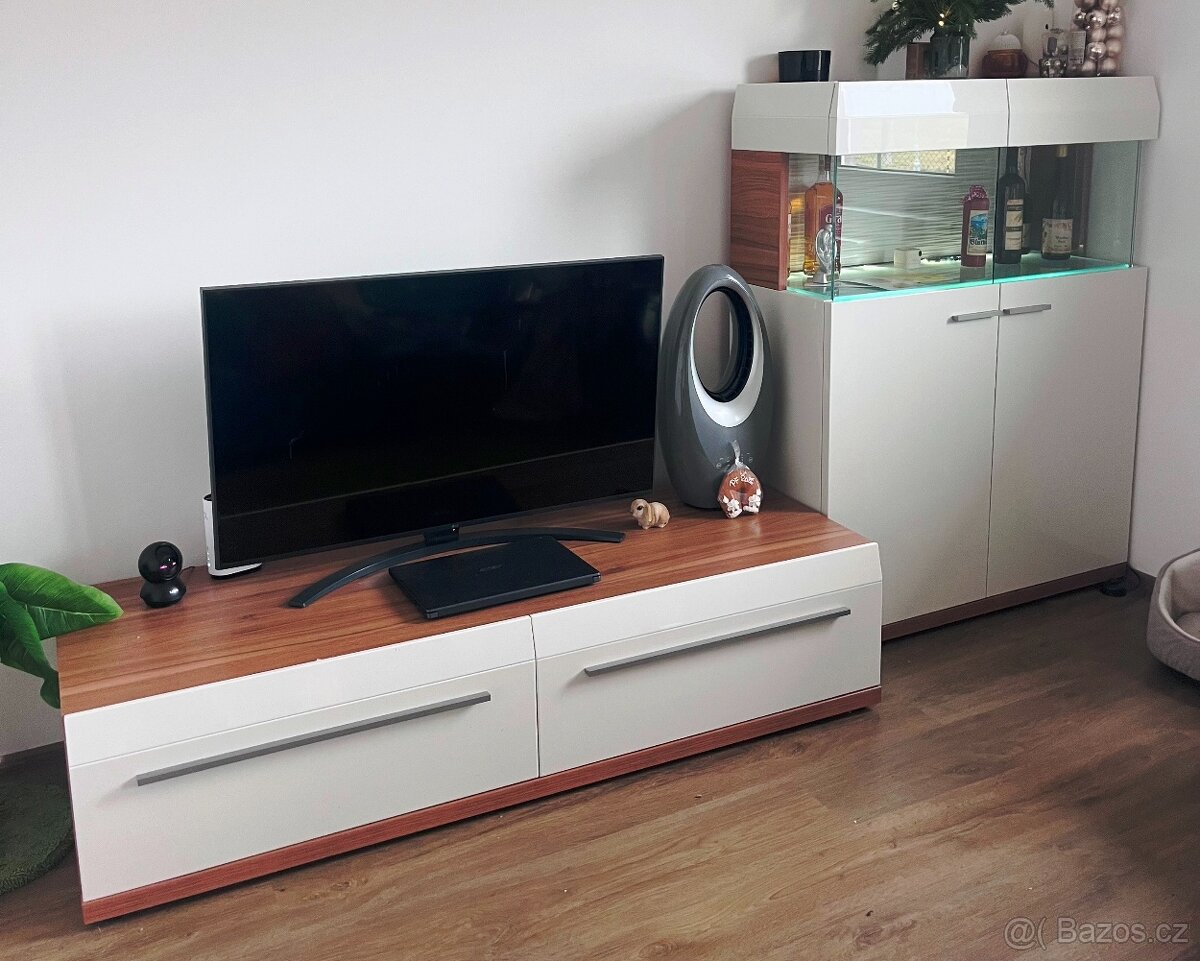 Prodávám téměř nový nábytek z masivu do obývacího pokoje. Jedná se o konferenční stolek se sklem nahoře, televizní stolek - skříňka s dvěma velkými šuplíky, dále skříňka s prosklenou světelnou vitrínou s dvířky a uvnitř dvěma policemi a velká dvoumetrová police na zeď. Vše je možno k osobnímu vyzvednutí ve Zbůchu u Plzně. POUZE osobně s ohledem na váhu nábytku. Žádného kurýra neposílejte...