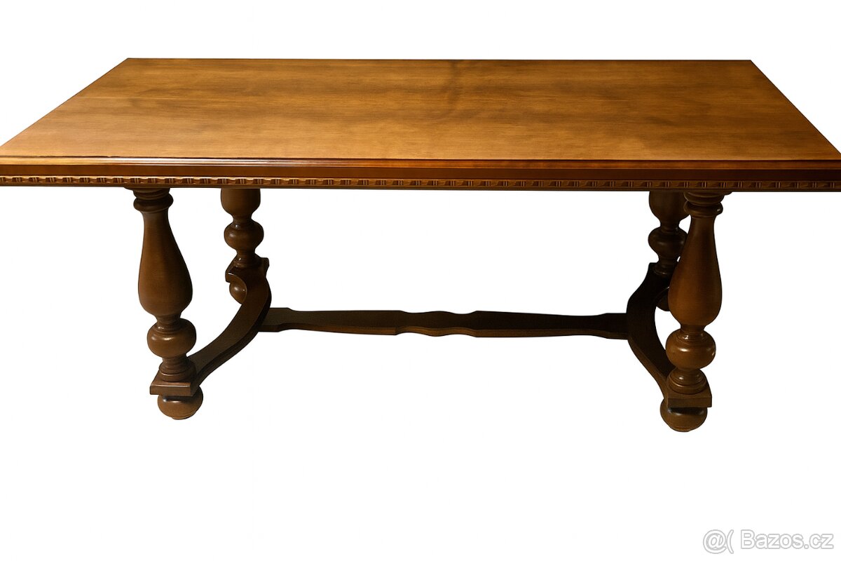 Prodám pevný a stabilní dřevěný jídelní stůl s krásně tvarovanými nohami a dekorativním okrajem desky. Stůl je v dobrém stavu, pouze drobné známky používání na desce. Ideální do chalupy nebo stylového interiéru.