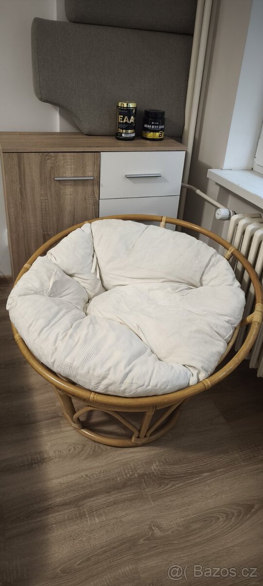 Nabízím 1ks ratanové křeslo s polstrem v dobrém stavu o průměru 100cm.