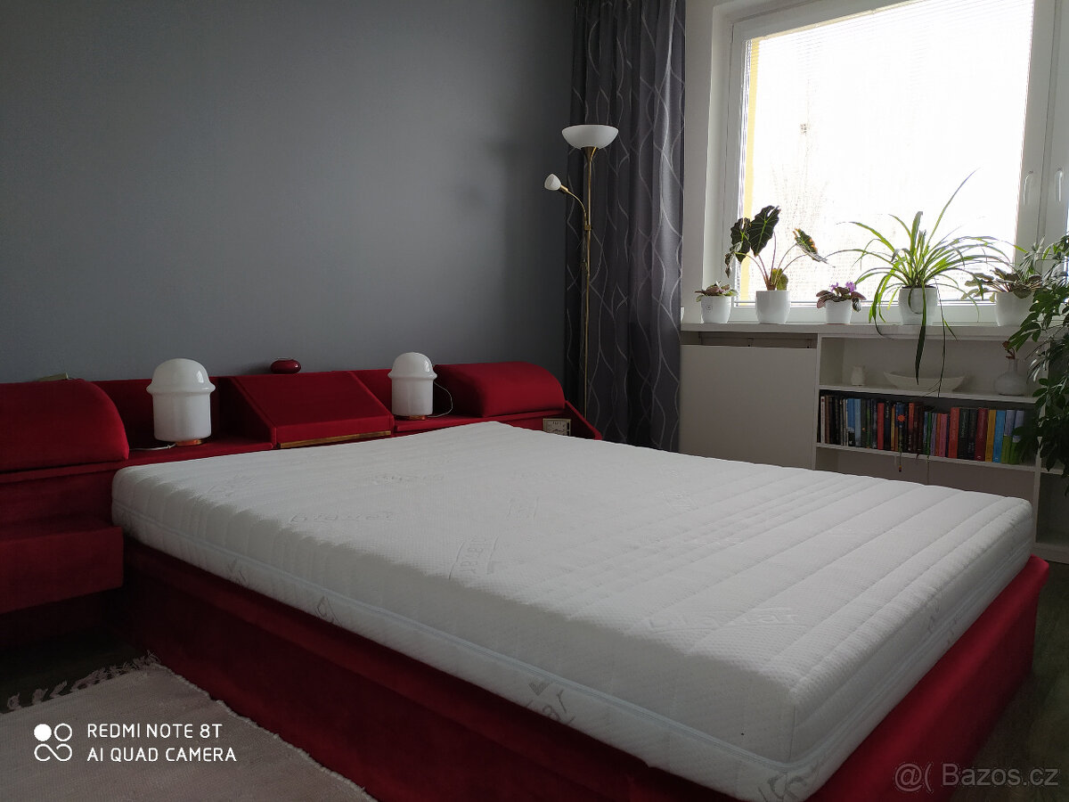 Prodám čalouněný set. Postel 150x200cm s úložným prostorem a pevným roštěm, vč.zánovní matrace. V záhlaví postele jsou další dva úložné prostory na peřiny. Info pouze telefonicky, na SMS nereaguji.