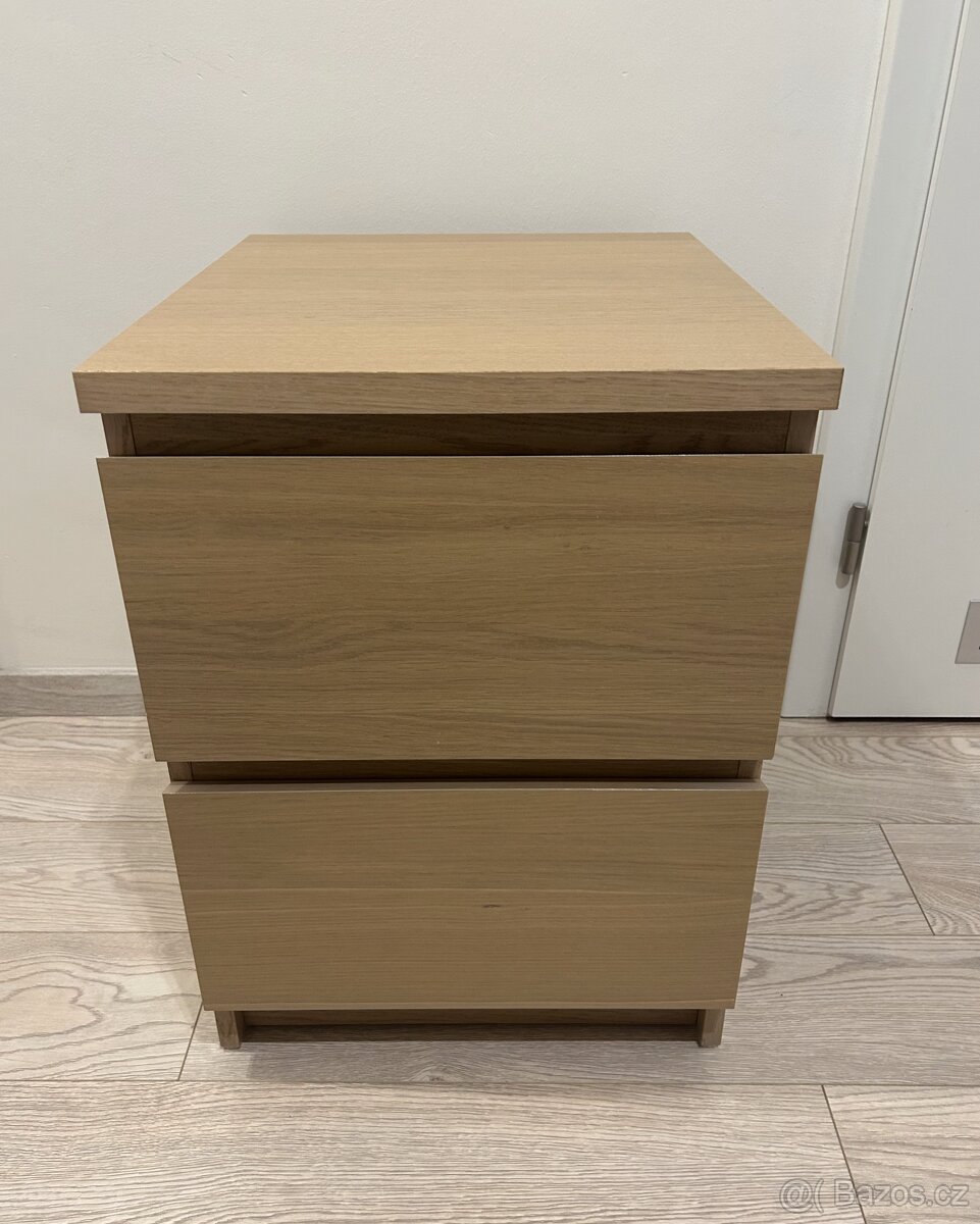 Prodám komodu Malm (Ikea) se 2 zásuvkami, bíle mořená dubová dýha.