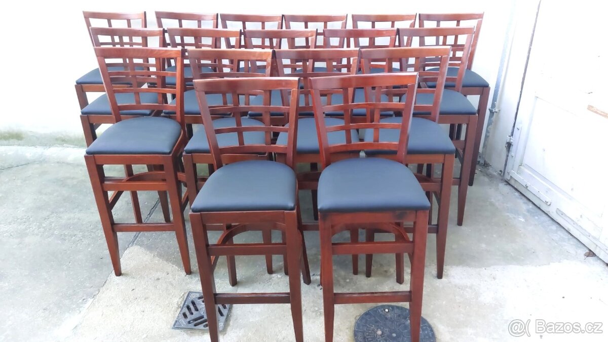 Prodám restaurační barové (hospodské, kavárenské) používané židle nově přečalouněné . K dispozici je celkem 29 kusů , uvedená cena je za jeden kus, prodej je možný i po kusech. Barovky jsou vhodné do gastro provozoven, restaurací či cukráren. Uplatnění by mohly najít také v barech či kavárnách. Jsou vhodné také do jídelen.