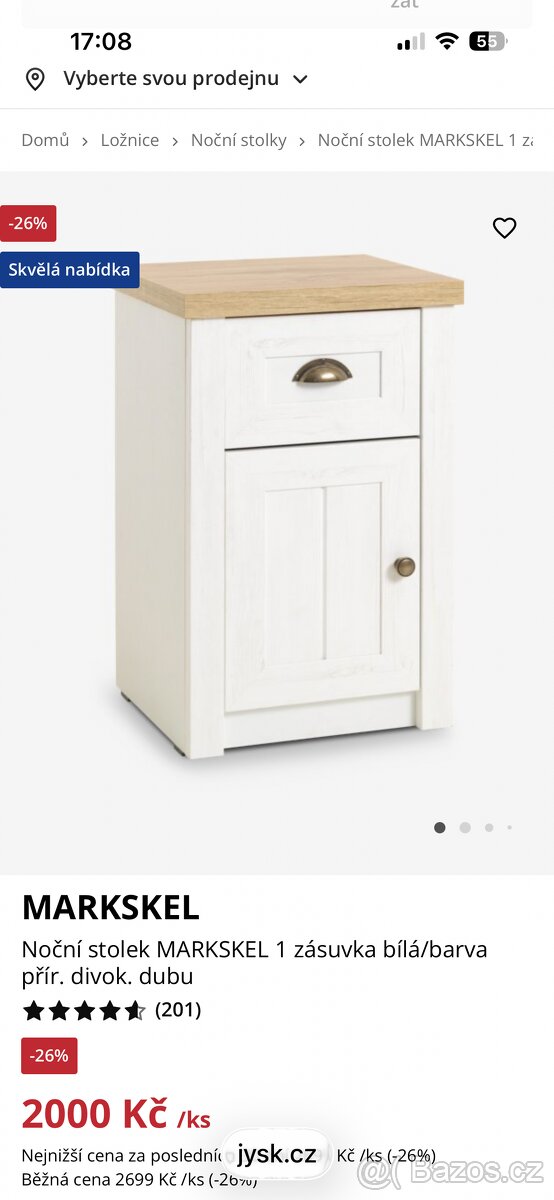 Prodám 2x noční stolek Markskel z Jysku. Šířka 42cm, hloubka 37cm, výška 67cm. Cena v Jysku 2000,-/ kus, prodám za 1000,-/kus