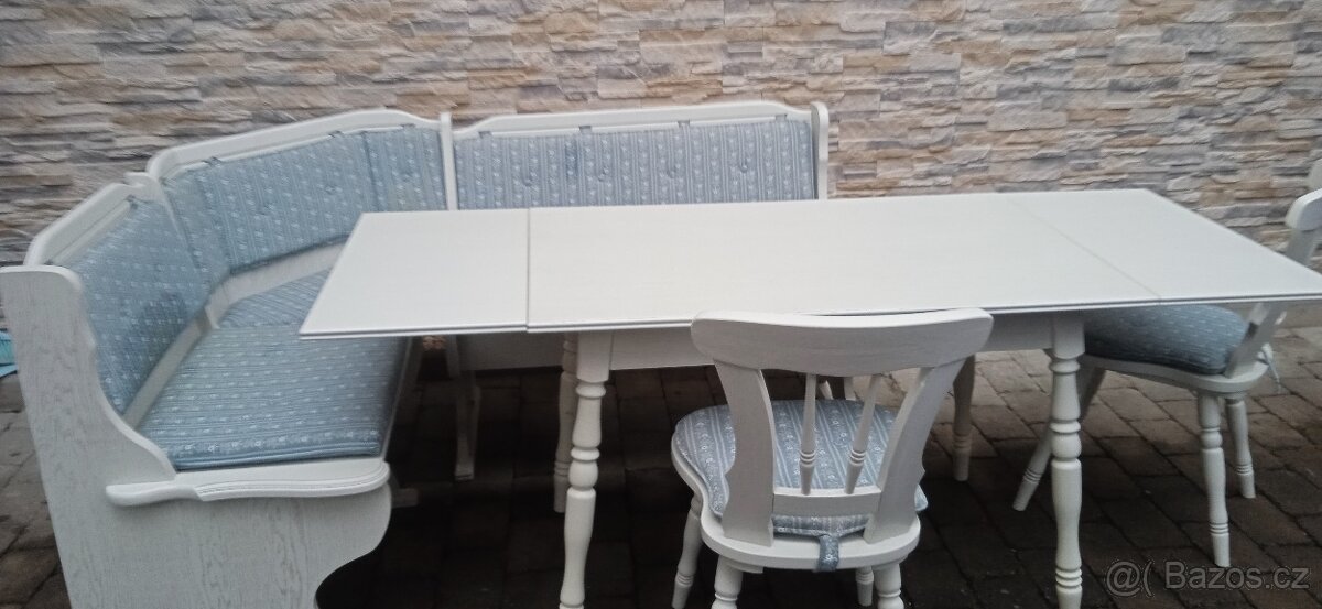 Rohova lavice - TOP - [17.2. 2026]Prodám masivní rohovou lavici ...rozměr lavice ..kratší strana 115cm delší strana 140Cm ( možnost přehodit levá i práva strana ) úložný prostor na obouch stranach..stůl o průměru 90cm možnost prodloužení o 30cm ...2x židle ..... Dovezené z Německa.. ...