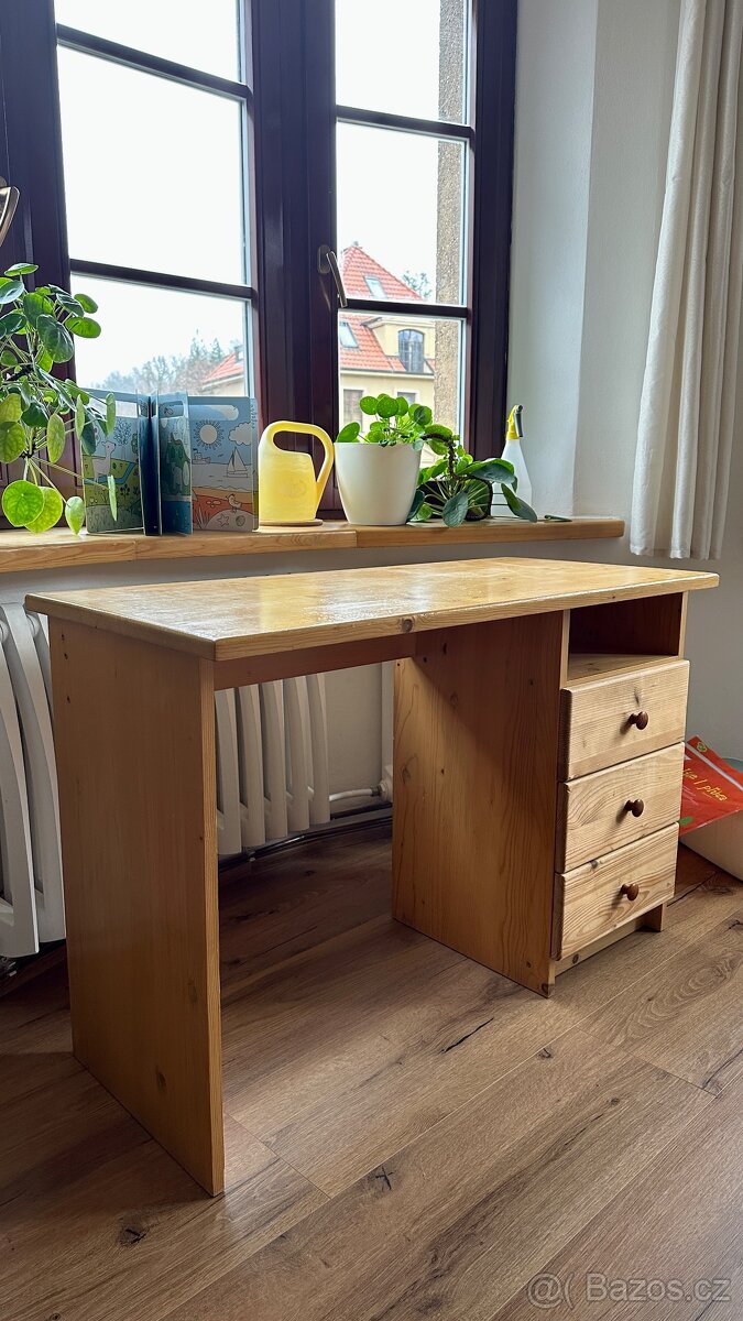 Prodám dřevěný psací stůl se třemi šuplíky, rozměry viz foto