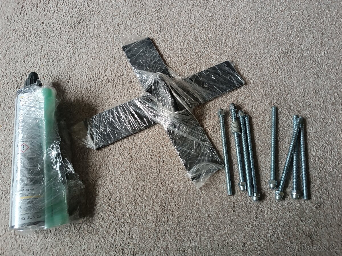 Závěsný kříž do stropu na lustr, 8 šroubů s podložkami a ozdobnými matkami. Chemická kotva. Nosnost minimálně 100 kg. Za výrobní cenu.