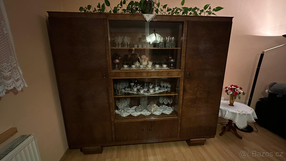 Art deco nábytkový set – vitrína + 2 skříně