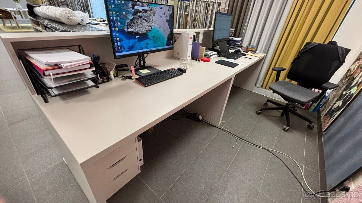 Prodej psacího/kancelářského stolu - TOP - [31.1. 2026]Prodám velmi prostorný, zakázkově vyráběný rohový psací/kancelářský stůl. Díky svému tvaru je ideální do rohu místnosti nebo podkroví. Nabízí obrovskou pracovní plochu, integrovaný prostor pro PC tower a vyvýšenou polici na monitor pro lepší ergonomi ...