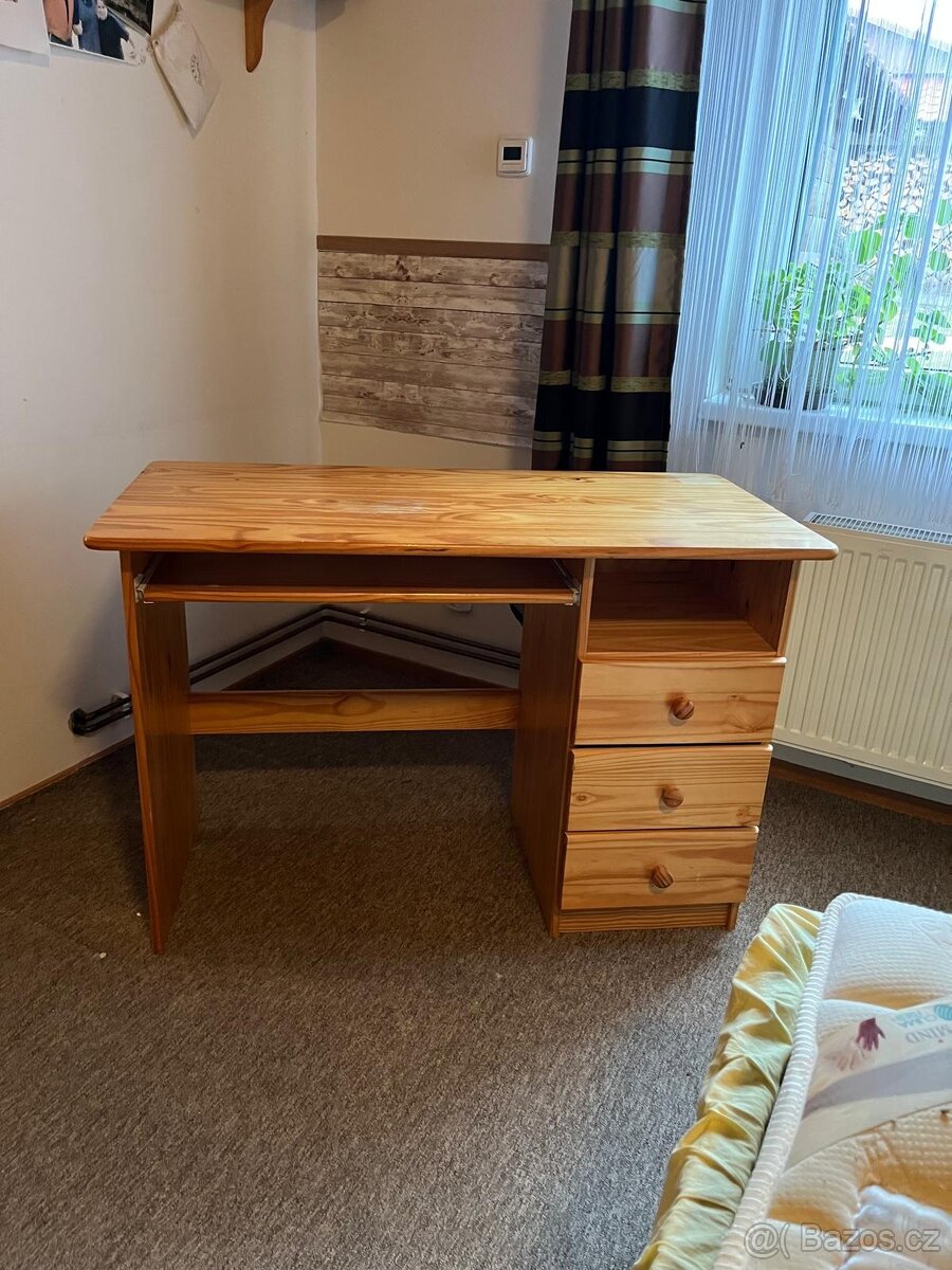 Kancelářský stolek - [17.12. 2025]Prodám menší kancelářský stolek, vhodný i pro dítě. Materiál lamino, zásuvky plast, kovová konstrukce. Rozměry: šířka 118 cm, hloubka 44 cm, výška 68 cm. Cena 300,- Kč. Info 603 534 783 nebo mailem.